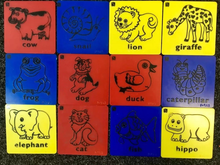 12 Picture squares,1 x Dog,1 x Cat,1 x Frog,1 x Caterpillar,1 x Fish,1 x Snail,1 x Hippo,1 x Lion,1 x Elephant,1 x Giraffe,1 x Cow,1 x Duck