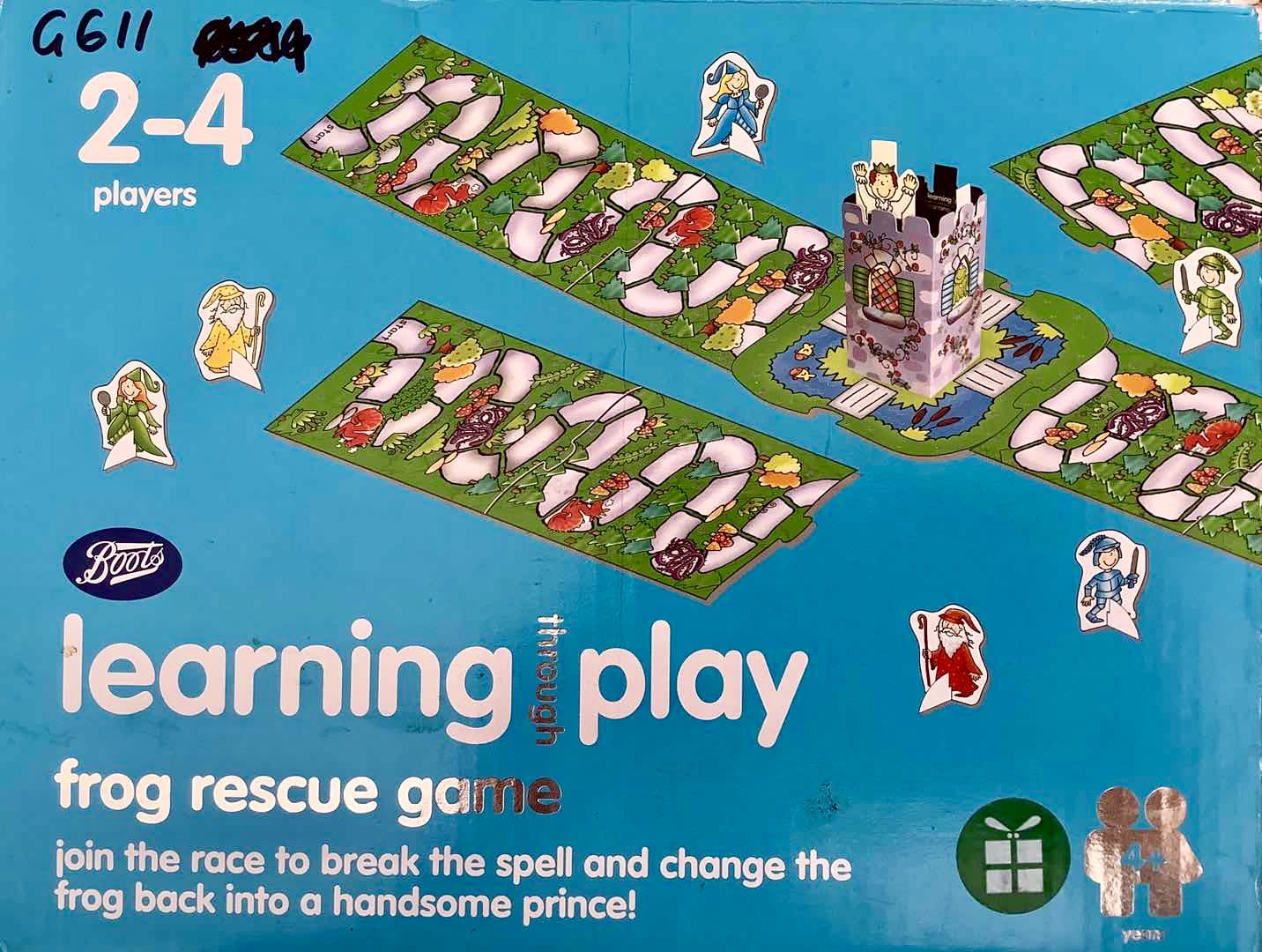 39 pieces+ 1 toy library bag 9 x Jigged Playing Boards 4 x Dice 1 x 3d Castle Tower 12 x Character Playing Pieces 12 x Plastic Playing Piece Stands 1 x Box