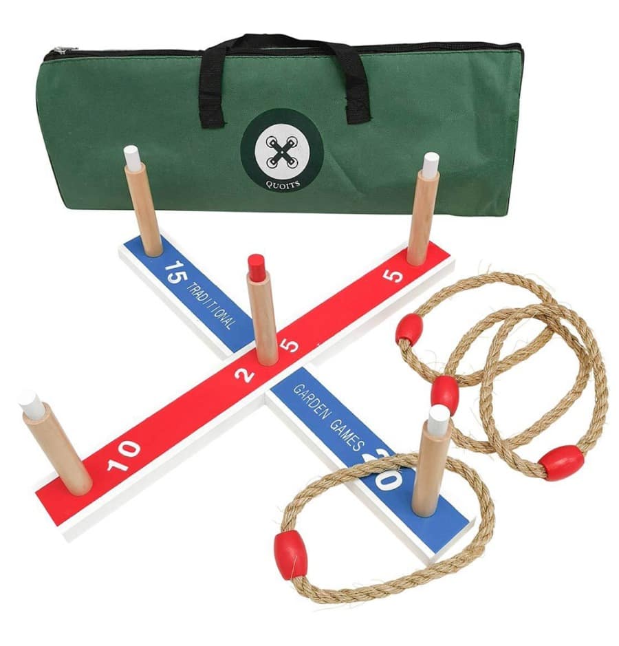 GARDEN QUOITS,12 pieces,1x green bag 2x crossover wood base,4x rope quoits 5x swing stakes