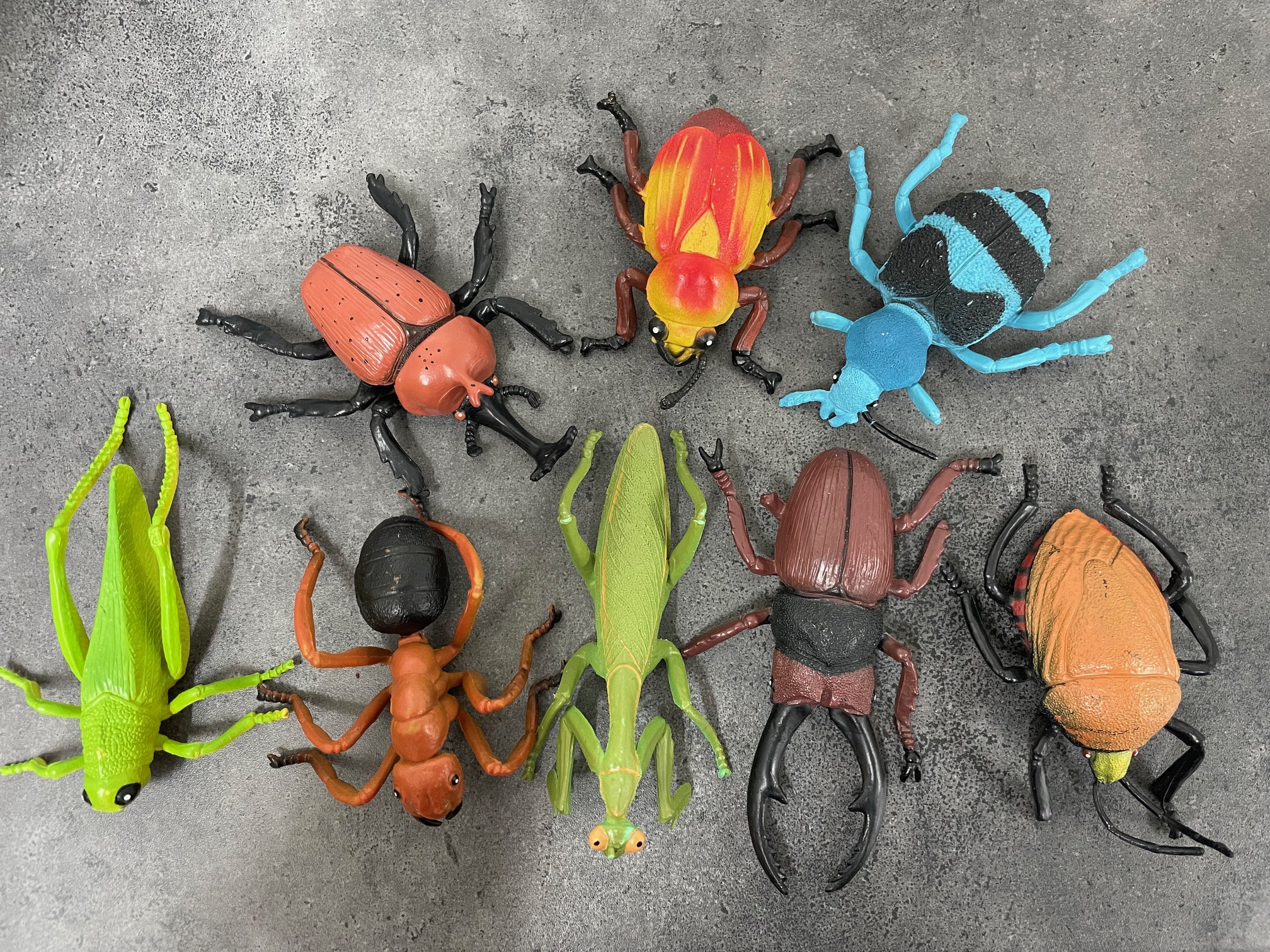 8 pieces + 1 toy library bag 1 x praying mantis 1 x ant 1 x grasshopper 5 x beetles Note: engraved as TB065